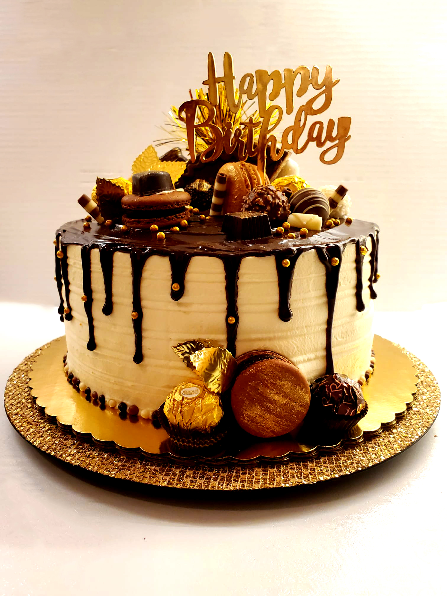 This scrumptious dish is a combination of flavors from both Chocolate and Vanilla Custards, Italian Cream Frosting, and Chocolate Ganache Drip. The cake is layered with the perfect balance of sweetness and opulence. Lavishly adorned with an abundance of sugary surprises, this Vanilla cake with Chocolate and Vanilla Custard, Italian Cream Frosting and Chocolate Ganache Drip is an indulgent treat that promises to tantalize your taste buds! Enjoy the exquisite mix of flavors with every bite!